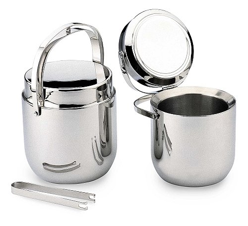 Ice cubes stay colder much longer inside an ice bucket with a double walled (thermal insulated) construction. This professional quality ice bucket by GrunWerg® is made from heavy gauge 18/10 stainless-steel. The bucket is not only durable but absolutely stunning, in a combination of brushed satin and mirror polished, stainless-steel finishes. The double walled construction of two layers of 18/10 stainless-steel has a layer of air in between for optimum insulation, maintaining the icy temperature, which keeps the ice cubes frozen for hours within the bucket, without causing the bucket to sweat on the outside, minimizing condensation. Ideal for keeping frozen ice handy for drinks at parties and picnics. The ice bucket is also dishwasher safe, too. Product description provided by Brandcentre©.